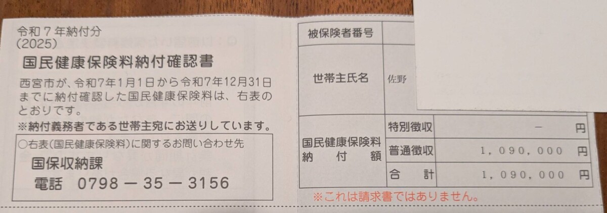 ちなみに、佐野は上限額【109万円】の国民健康保険料を納付しています!