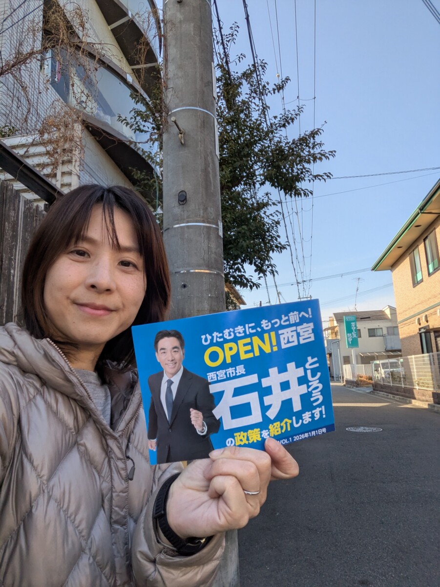 個人的に西宮市長の石井としろうを応援すべく、リュックを背負って朝から夕方までコツコツとポスティング。