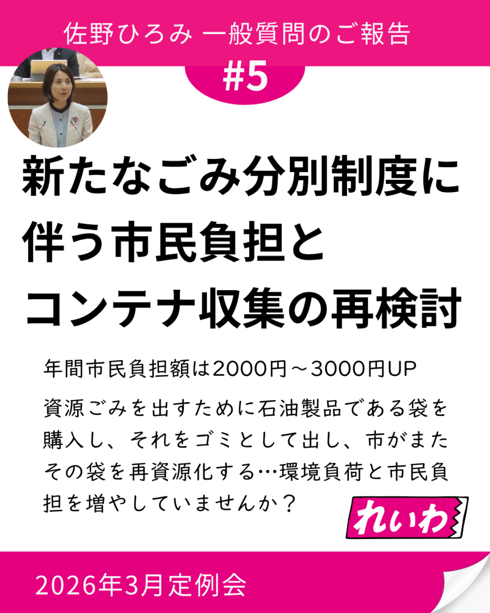 ③環境負荷への疑問。市は共通指定袋を再資源化すると説明しますが、市民の目には「資源を出すために石油製品である袋を購入し、それをゴミとして出し、市がまたその袋を再資源化する」というプロセスが、環境負荷と市民負担を増やしているだけに映る。